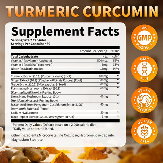(2 Packs) Turmeric Curcumin with Black Pepper Extract & Ginger, Extra Strength Turmeric Supplement, Enhanced Absorption, Turmeric Capsules for Joint, Skin Wellness and Mood Support, 240 Capsules