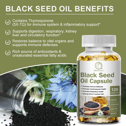 Bbeeaauu Black Seed Oil Capsules, 100% Virgin, Cold Pressed Source of Omega 3 6 9, Super Antioxidant for Immune Support, Joints, Digestion, Hair & Skin, 120 Caps