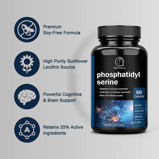 Bbeeaauu Phosphatidylserine Supplements Enhanced Absorption Brain Support for Memory Formation + Recall, Creativity, Brain Plasticity, Processing Speed, Learning,Cognitive Fluidity