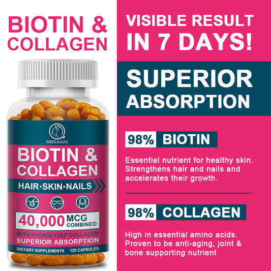 BBEEAAUU Collagen Biotin Capsules EXTRA STRENGTH HAIR, SKIN and NAILS Hair Care Hair Growth Essential Oil Repair Hair Follicle