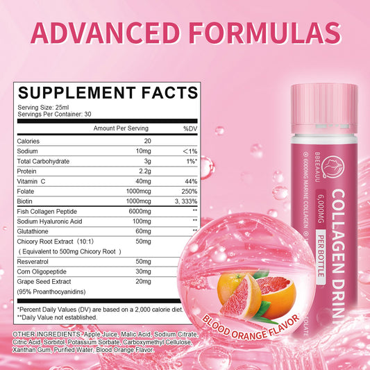 Collagen Drink with 6000mg Marine Collagen Peptides, Blood Orange Flavor