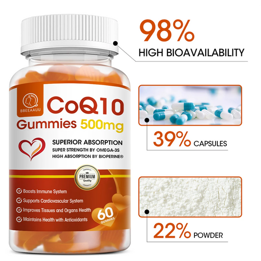 BBEEAAUU COQ10 Gummies | CoQ10 500mg | Delicious Gummy Supplement | Heart Health | Vegetarian |Gluten Free| Ultra High Absorption | 1 Month Use (60 Gummies, 1 Bottle)