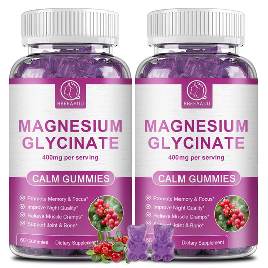 BBEEAAUU Magnesium Glycinate Gummies 400mg for Adults Cranberry Flavor